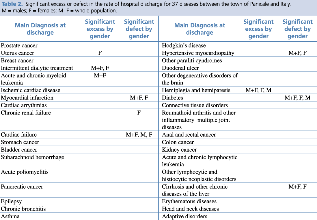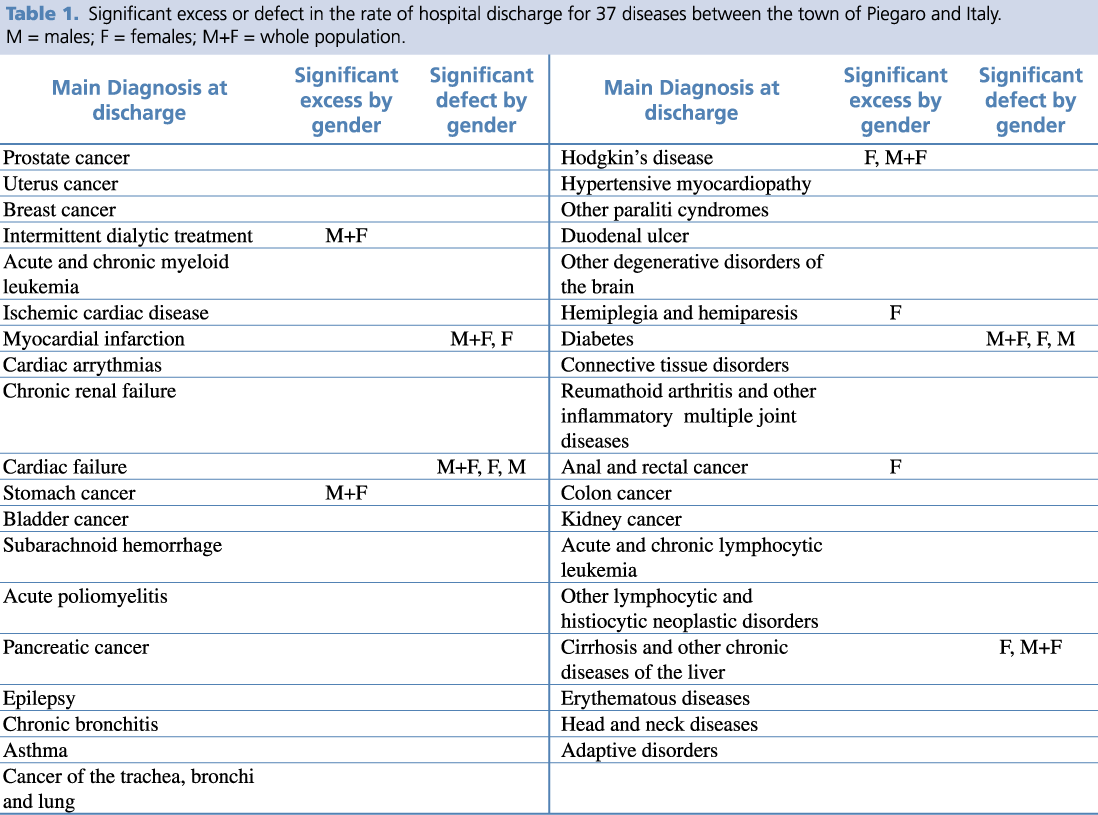 Table 1 shows any significant excess or defect in the diagnoses of 37 diseases in comparison to Italy.